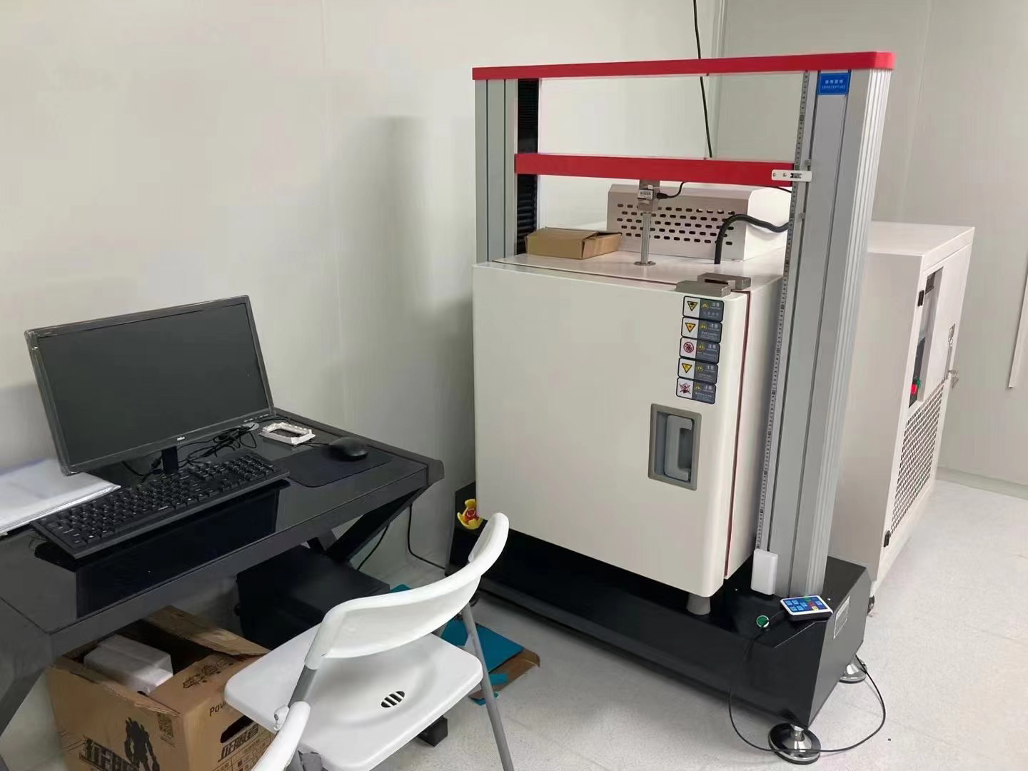 本次上海治臻采購我司高低溫拉力試驗機,高低溫拉力機是由高低溫箱和雙柱拉力機組成的,高低溫試驗箱常溫~300度,下面是現場培訓照片: