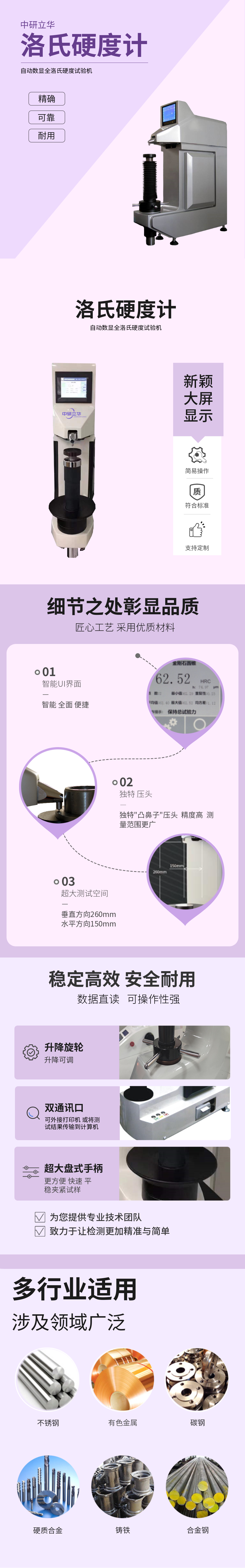 用途:適用于淬火、調(diào)質(zhì)、退火、冷硬鑄件,可鍛鑄件,硬質(zhì)合金鋼、鋁合金、銅合金、軸承鋼等硬度測(cè)定。