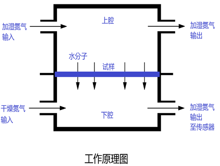 ■ 濕度差:上腔的水分子透過試樣 擴散到下腔